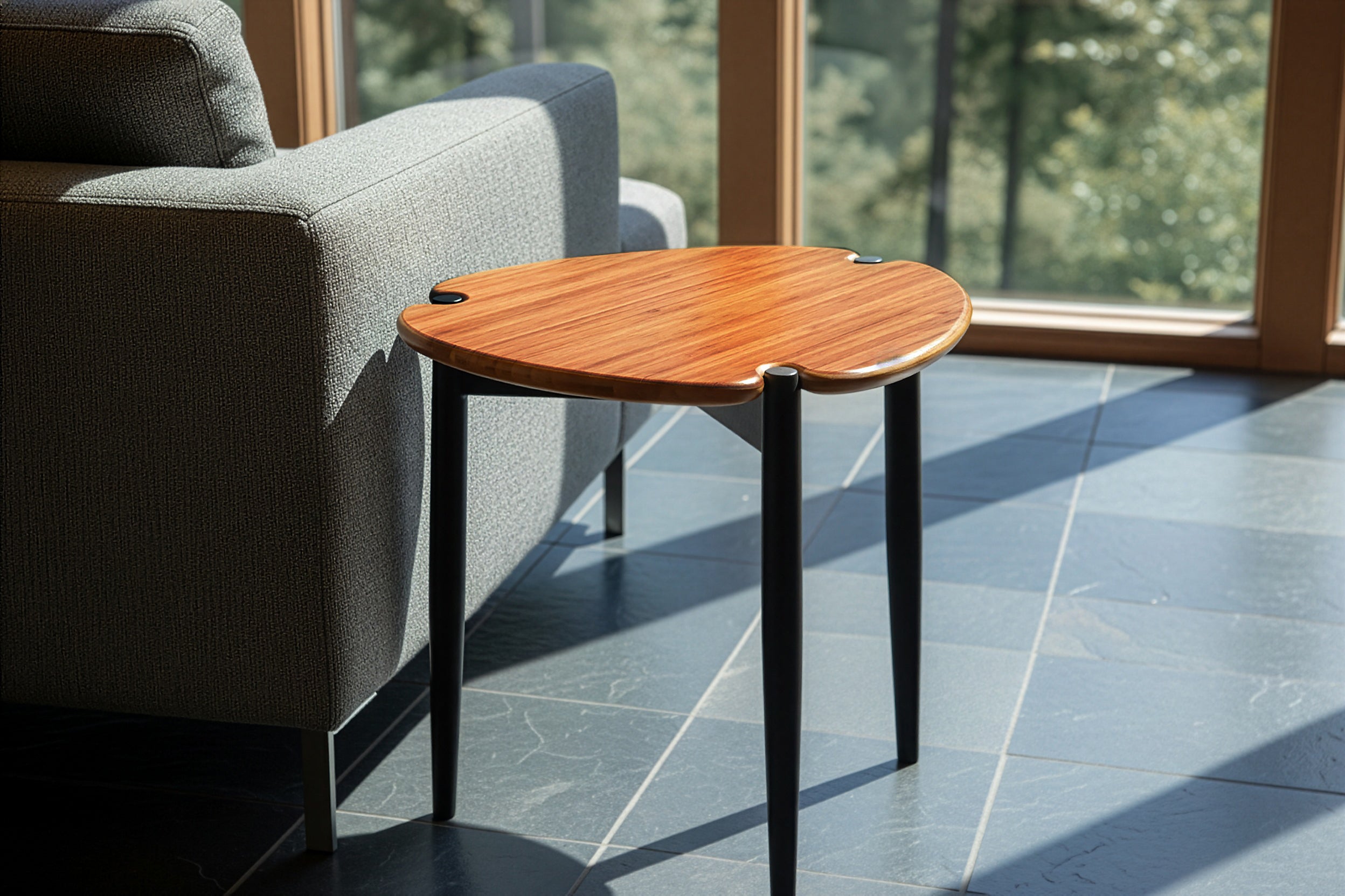 Effortlessly modern with a sculptural edge, the Tofino side table brings thoughtful design and sustainable craftsmanship into perfect balance. Its softly contoured tabletop features subtle organic cut-outs that create visual rhythm while adding a touch of playful sophistication—proof that modern design doesn’t have to feel rigid.