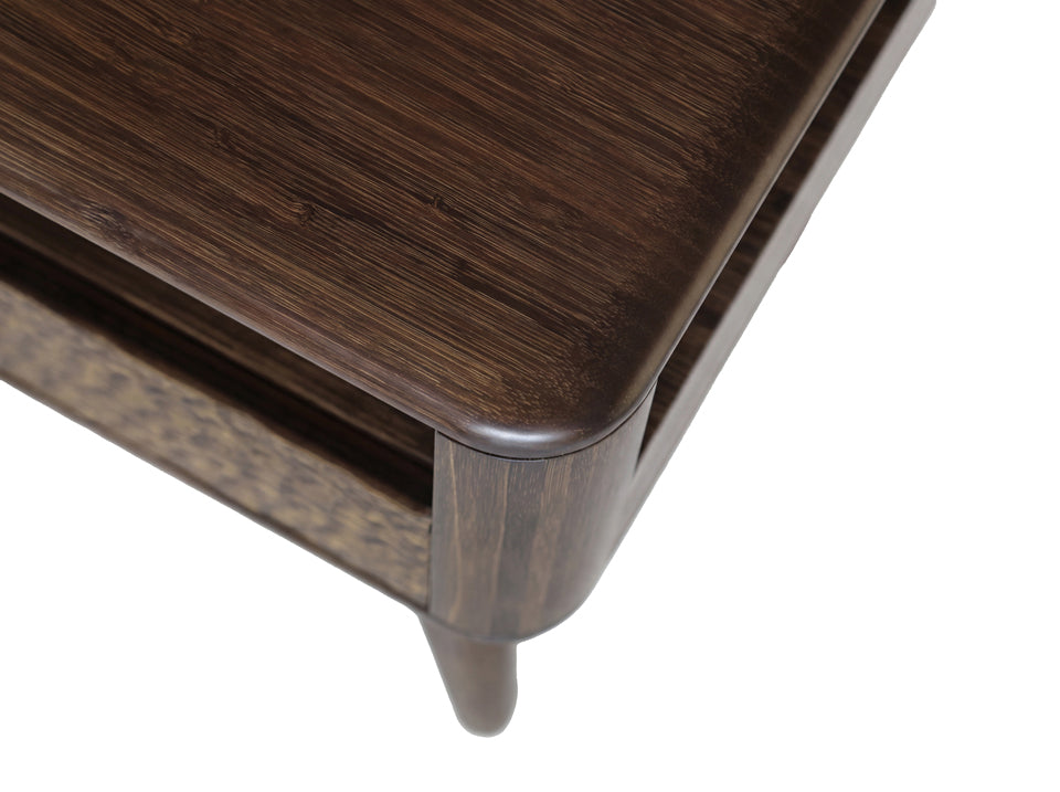 Crafted from 100% solid Moso bamboo, Zeva is finished in Greenington’s rich Black Walnut—a deep, transparent stain that brings out bamboo’s expressive grain with warm, modern depth. Every surface feels intentional, from the softly rounded edges to the beautifully curved legs that give Zeva its light, elevated stance.