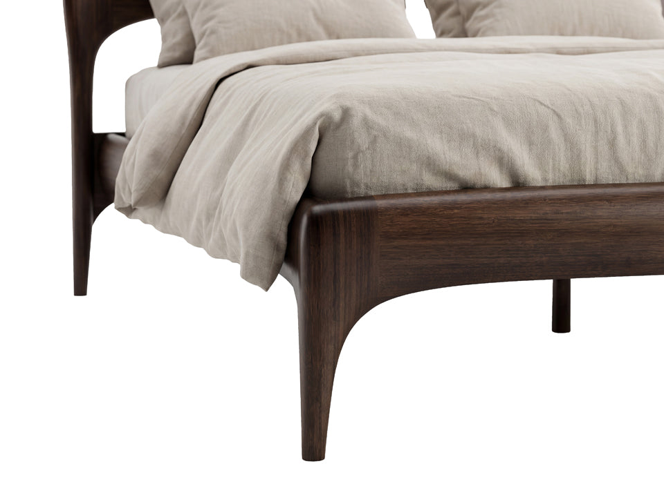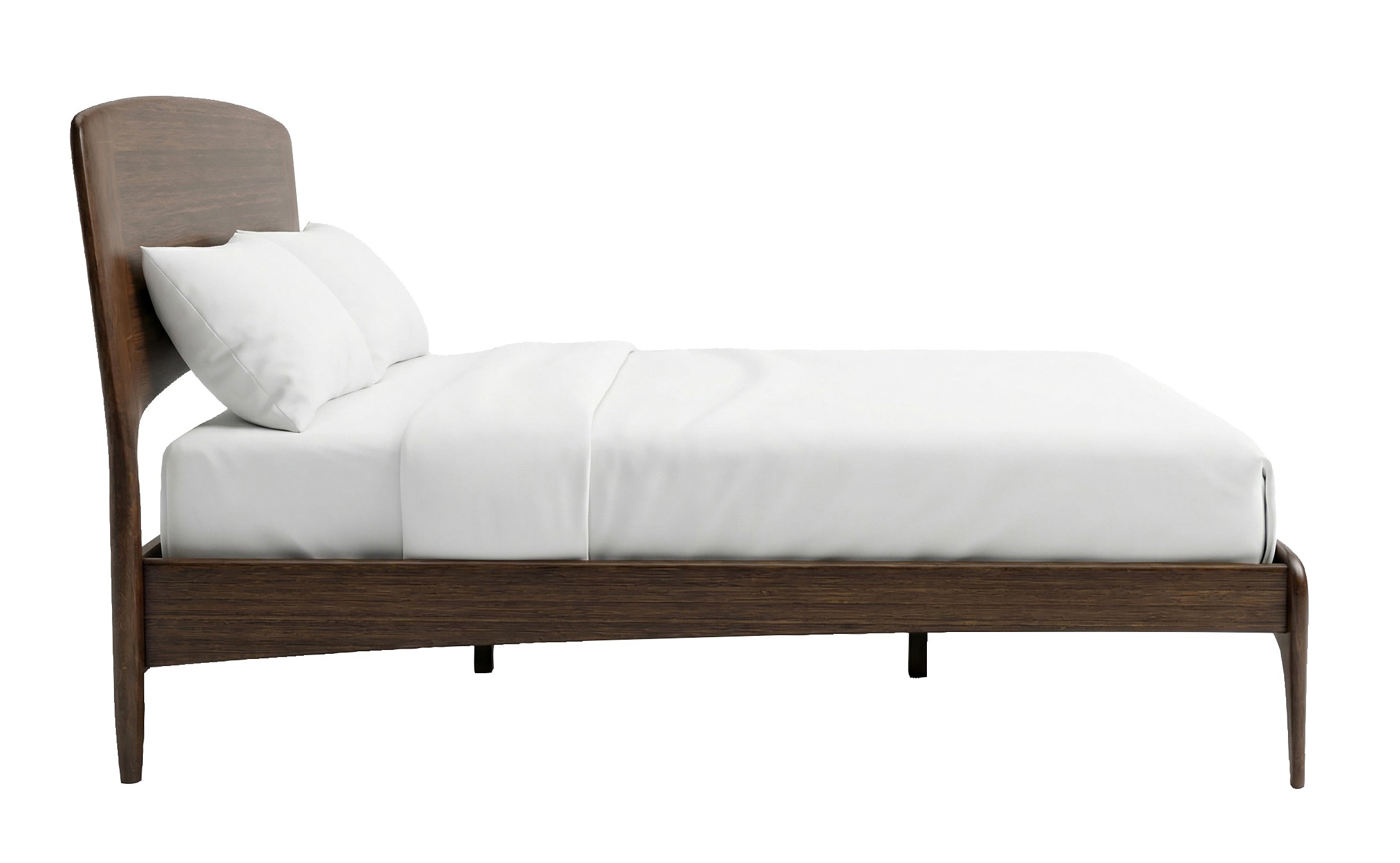 The Zeva Platform Bed captivates with a gracefully curved headboard, smooth contoured frame, and softly rounded edges that highlight its sculptural artistry. Elegantly tapered legs and a clean, modern silhouette create a calming focal point for any contemporary bedroom. Seamless joinery reflects exceptional craftsmanship, delivering refined beauty with enduring strength.