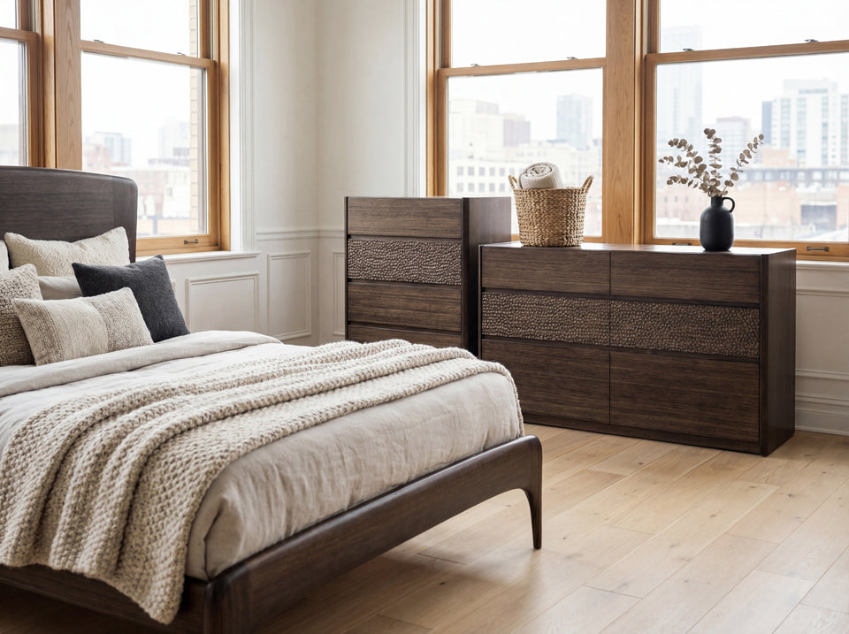 At the heart of the Zeva Bedroom Collection is 100% solid Moso bamboo, one of the world’s most rapidly renewable resources. Responsibly harvested and crafted in an ISO 14001-certified facility, bamboo is 20% harder than red oak—delivering exceptional durability, stability, and lasting beauty.